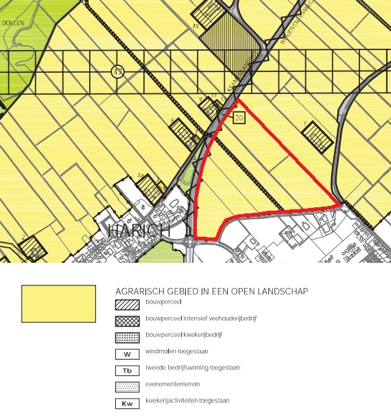 De bestemming is agrarisch gebied in een open landschap.